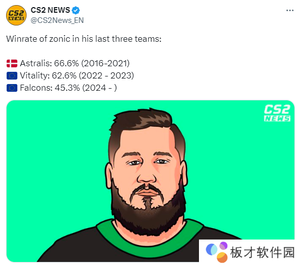 Falcons在TP 世锦赛中两连败被淘汰出局,外媒CS2 NEWS统计了丹麦传奇主教练zonic近8年来执教三支不同队伍的胜率情况。其中,在效力