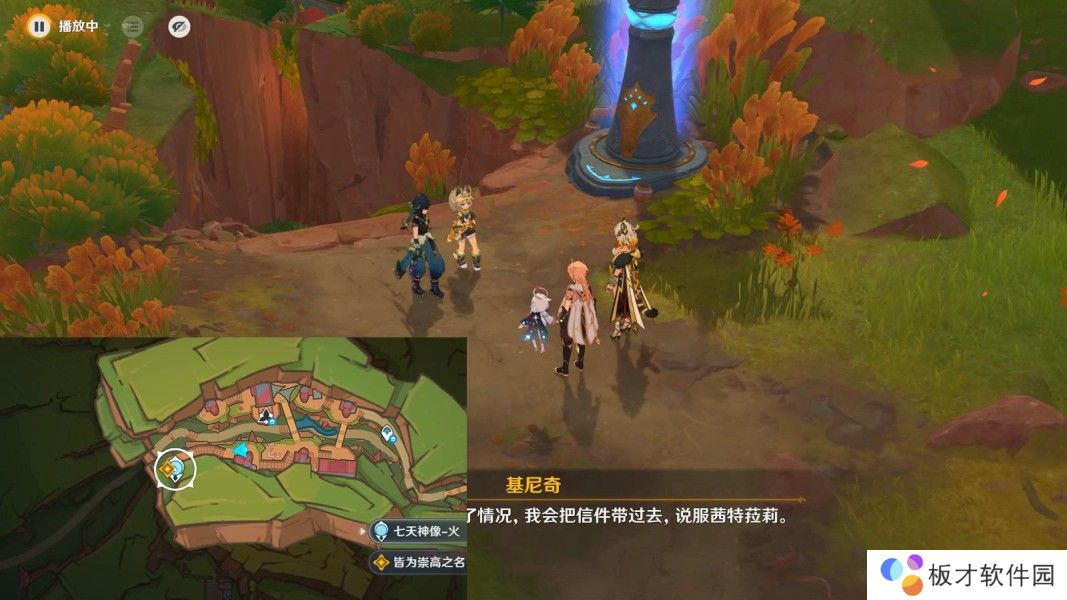 ▶前往石柱下,与欧洛伦对话3分钟;