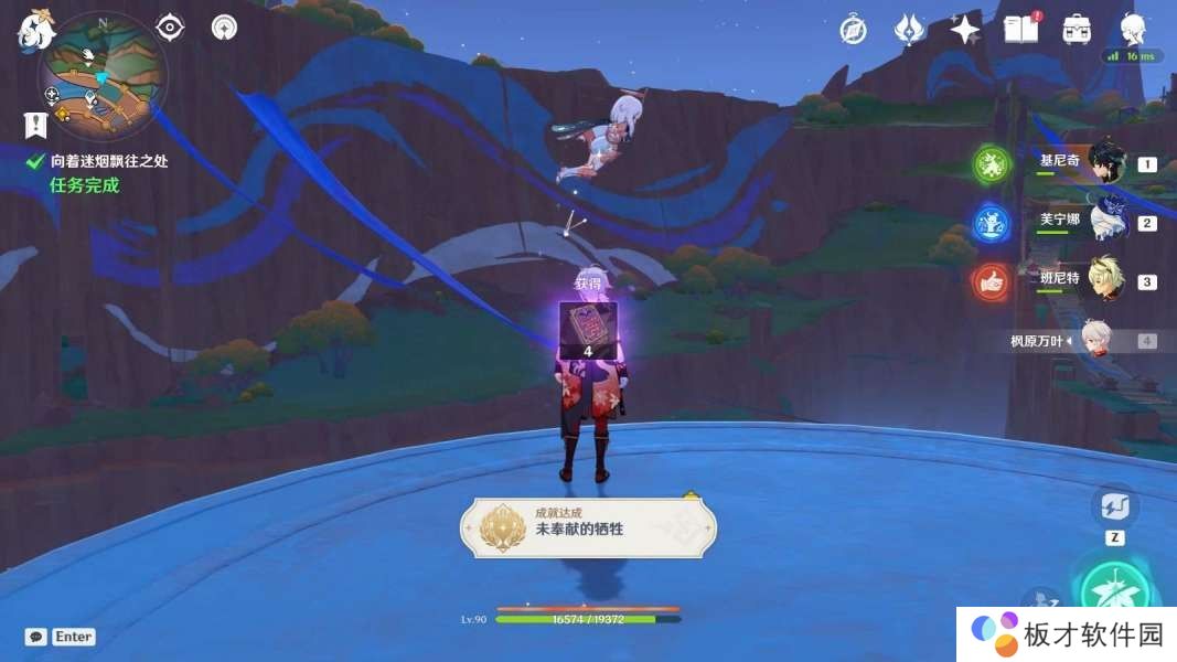 对话结束,完成任务「向着迷烟飘往之处」,获得成就「未奉献的牺牲」