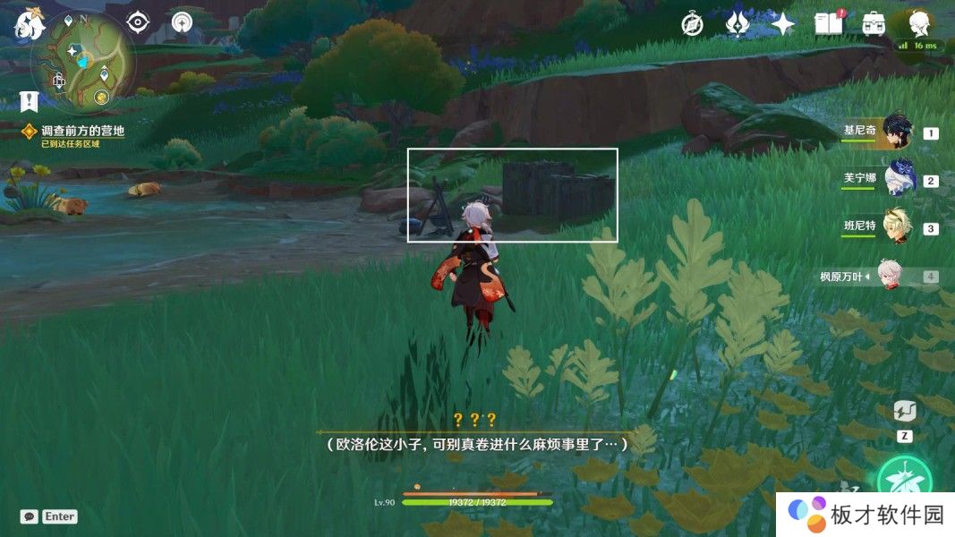 往地图西南方向走,前往山坡上,与欧洛伦对话4分钟