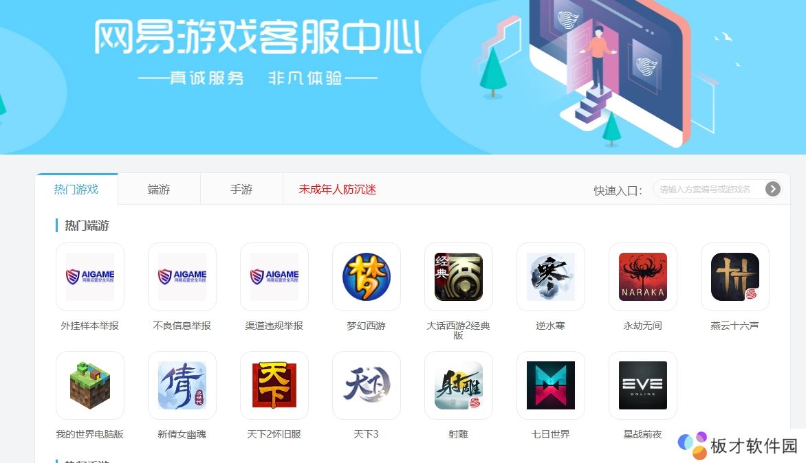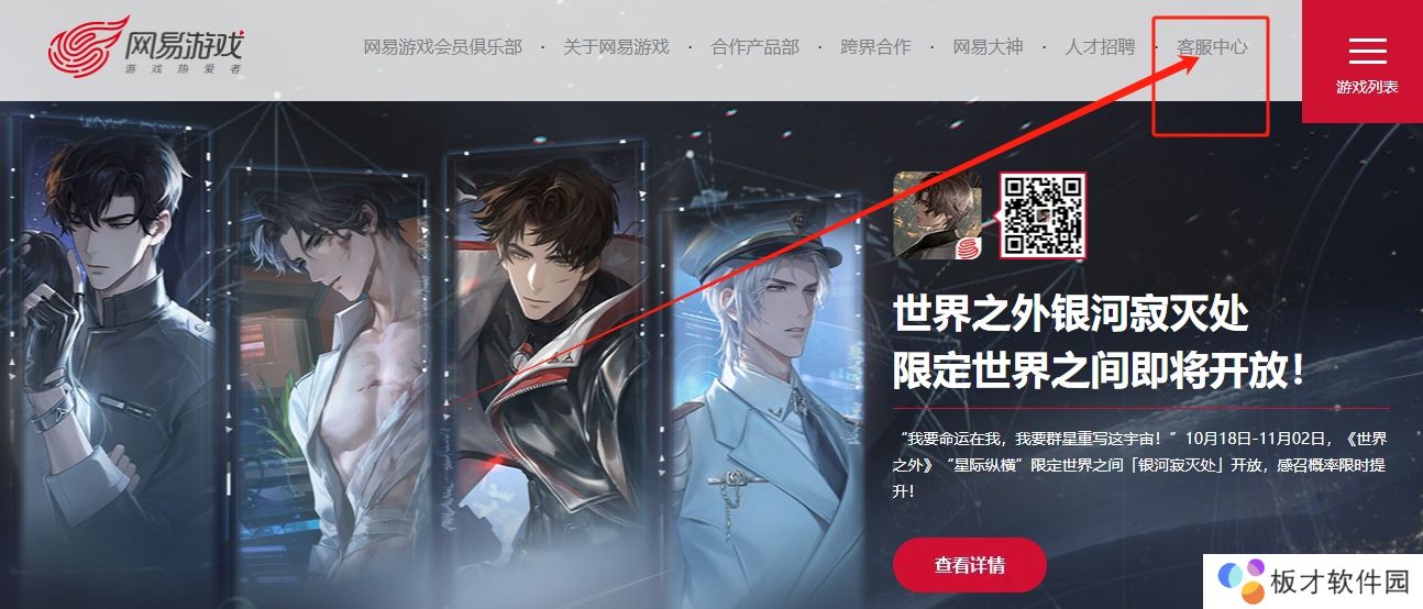 1、打开网易游戏官网,点击右上角“客服中心”。