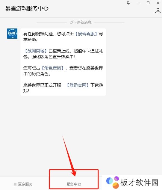 1、首先在微信关注【暴雪游戏服务中心】公众号。
