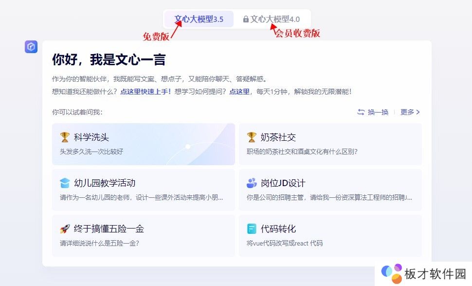 2、通过首页点击文心3.5模型即可体验免费版文心一言。