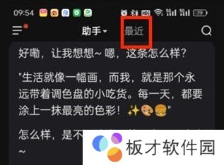 1、首先打开文心一言app,在对话页面点击上方的“最近”。
