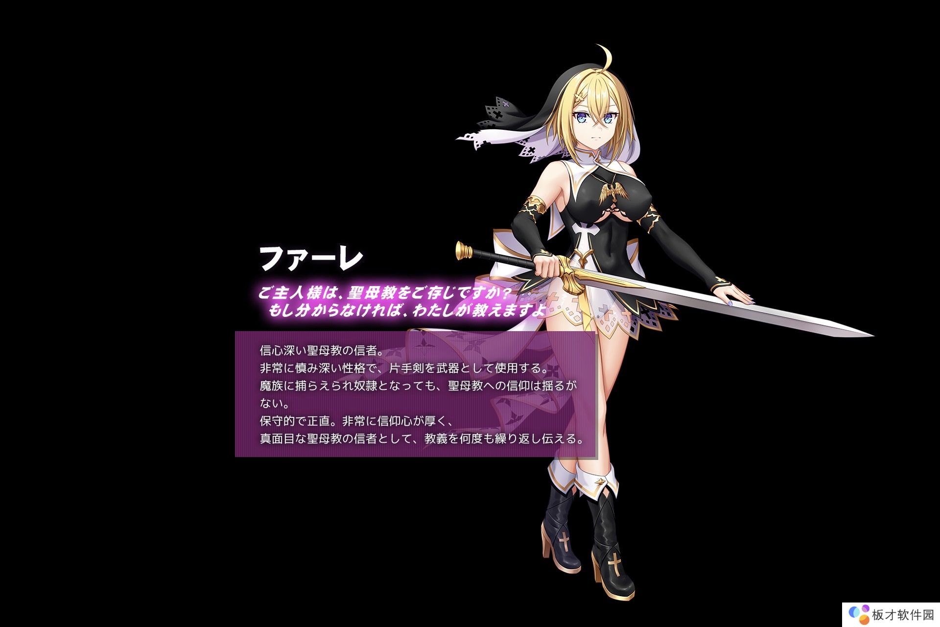 虔诚的**教信徒,性格非常谨慎,使用单手剑。即使被魔族所捕而成为奴隶,对**的信仰仍丝毫不动摇。保守而正直,信仰心非常深厚,是很认真的**教信徒,会反覆宣讲教义。