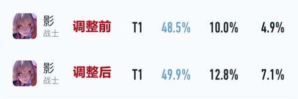 调整后影的巅峰赛胜率从48.5%上涨至49.9%,满级大招提供100%额外血量,半肉出装团战进场吃2-3秒的集火完全没问题。