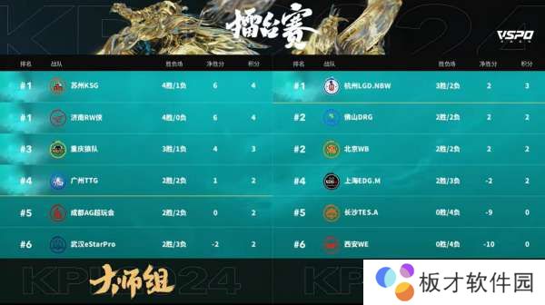 在昨天的比赛里,此前三套阵容换着炸鱼的苏州KSG1-3意外翻车,大师组6支队伍里就只剩济南RW侠目前对阵精英组还是大场不败。已经打掉精英组前三的他们,赢下长沙TES.A即可五连胜提前锁定淘汰赛,看看济南RW侠能否守住大师组最后的荣光吧。