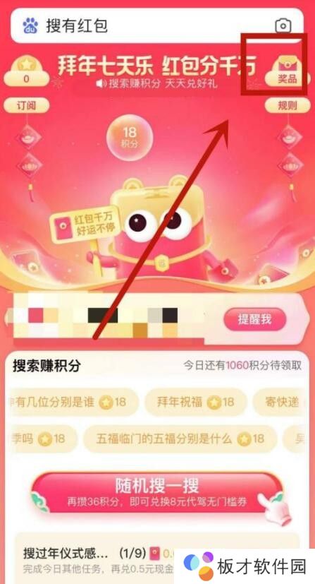 2、进行其中的搜索任务以后打开就能够得到红包奖励。