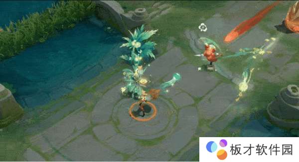 普通攻击射出带有丝绸缎带的流矢,一技能凝聚成球的桑树之力释出,落地生根而后花开叶散。