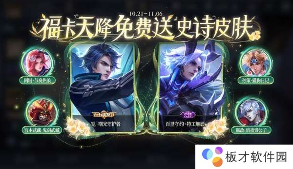 活动时间10月21日-11月6日,完成任务获得福卡钥匙抽取福卡,10月26日首刷必出史诗皮肤。