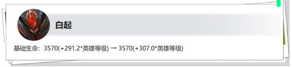 白起上调了15.8点血量成长, 即一级时血量不变,满级时比以前多了221点血量。