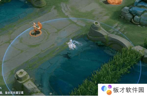 二技能蚕丝化为丝绸环绕其身,三技能丝织成锦化作艾琳的翅膀,凝聚着桑树之力的能量球随流矢释出。