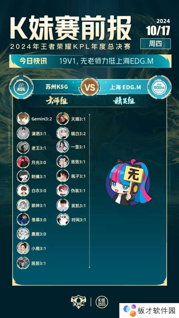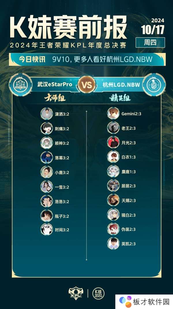 虎扑10月17日讯 今日K妹赛前报:全员看好KSG,更多人看好杭州LGD.NBW,原文如下: