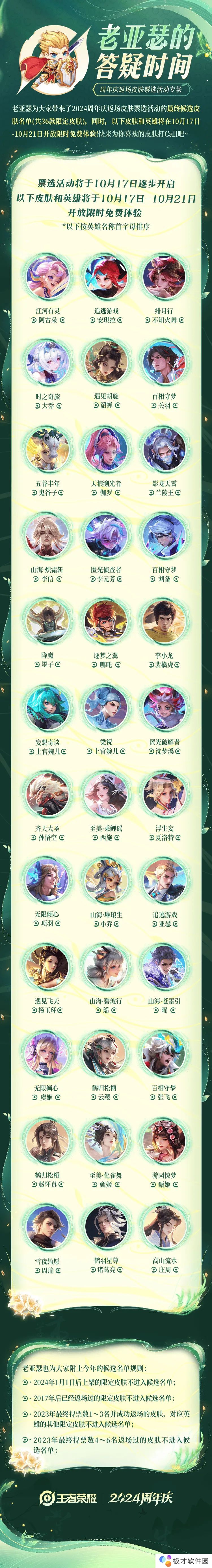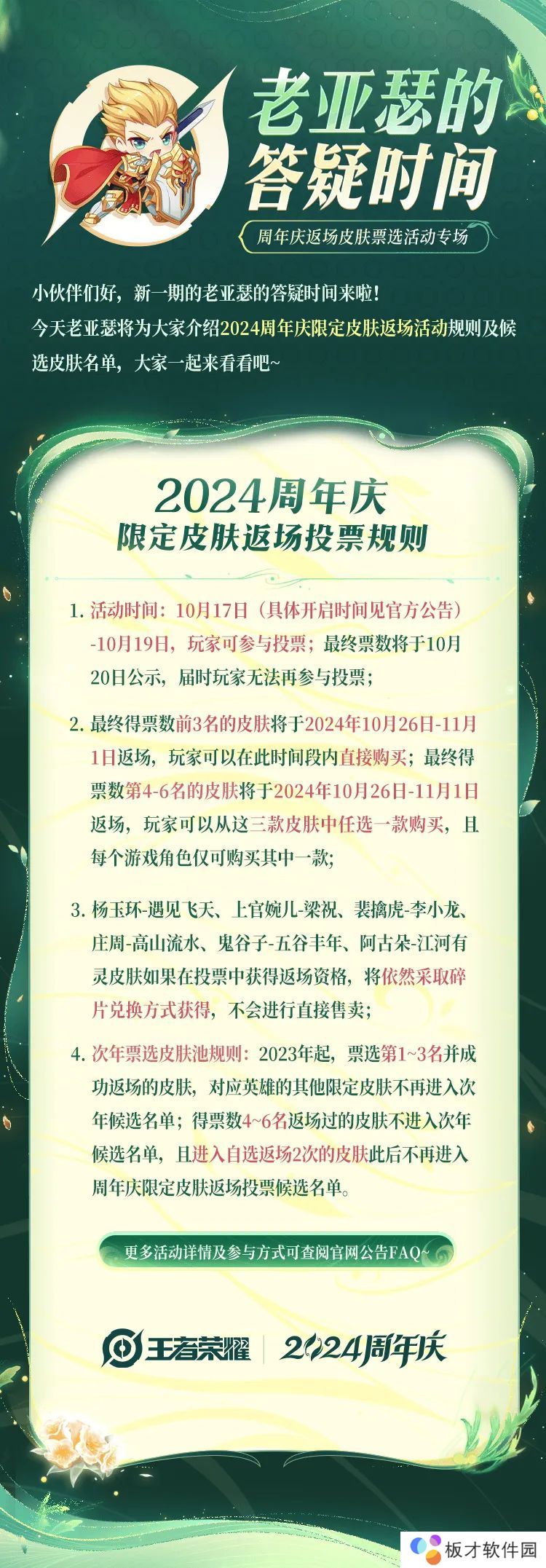 小伙伴们好~本期《老亚瑟的答疑时间》,为大家带来周年庆返场皮肤票选活动的最新消息!