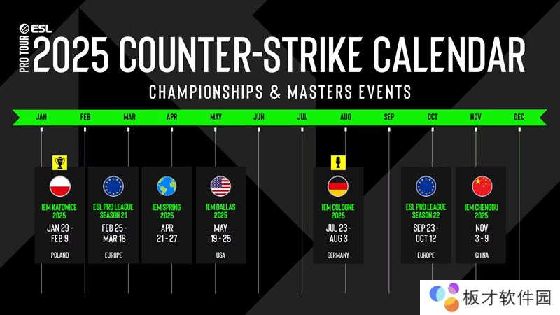 以下为ESL计划在2025年举办赛事的时间轴: