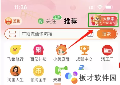 第一步打开淘宝,在淘宝首页可以看到【大赢家】的小图标,点击进入;