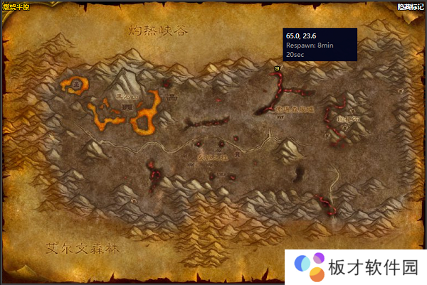 2、玩家可以前往燃烧平原,找到玛瑟迪斯·火芒(65.0,23.6)。