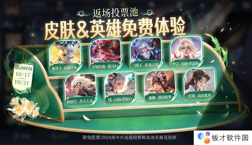 限免范围:2024周年庆返场投票候选池英雄及皮肤