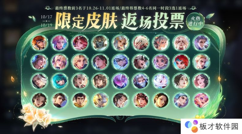 返场投票期间,对应英雄及皮肤将开启限免