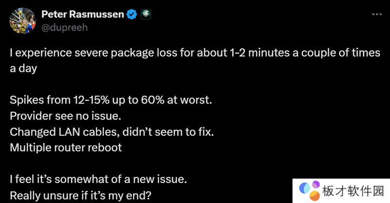Falcons战队选手dupreeh在社交平台上分享了自己游戏时遇到的问题,和其他职业哥不同的是,他每天都要经历几次严重的丢包问题。