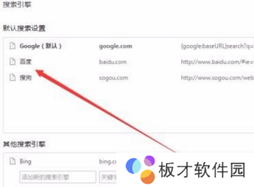 4、最后将百度或者搜狗设置为默认搜索引擎就可以了。