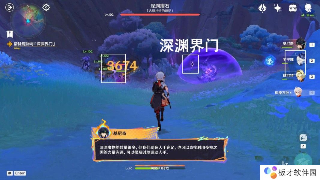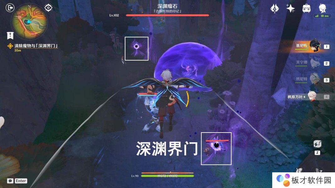 往地图的东方向走,利用元素攻击破坏2处「深渊界门」