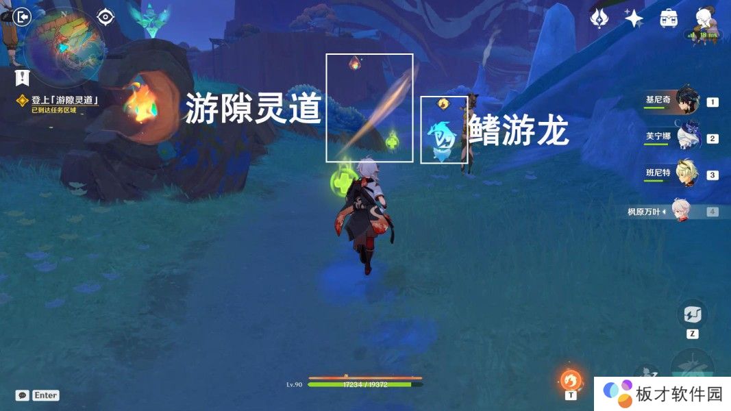 ▶跳上游隙灵道游1分钟,前往下一个地点;