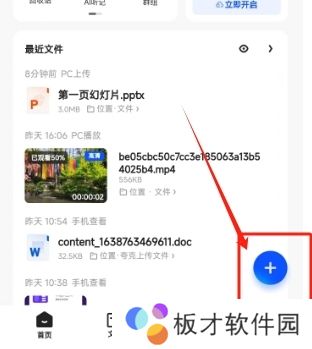2、接着在网盘页面点击右侧悬浮的“+”号图标。