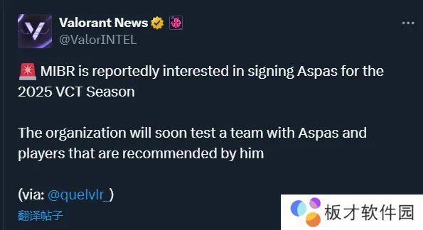 据巴西媒体vspace爆料,美洲战队MIBR有意签下aspas,并将在近期试训一套以aspas和他推荐的选手组成的阵容。