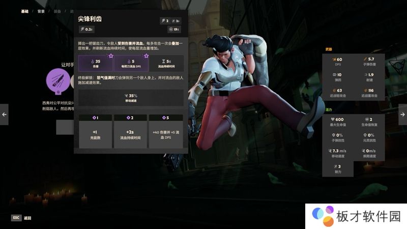 满怒效果:飞刀插中敌人后额外弹到周围一个敌人身上并施加减速效果。