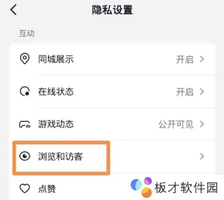3、然后在“隐私设置”页面点击“浏览与访客”。