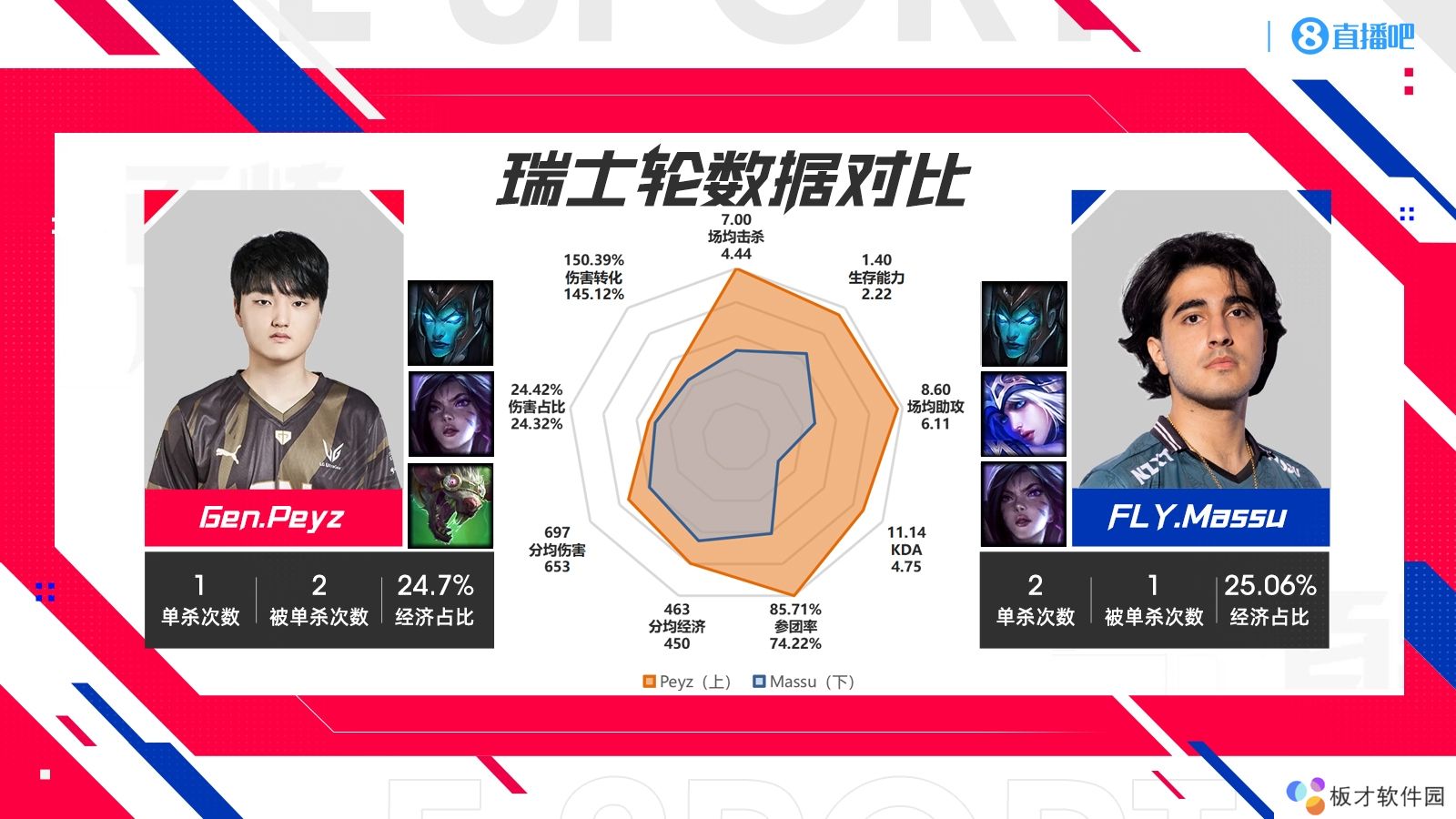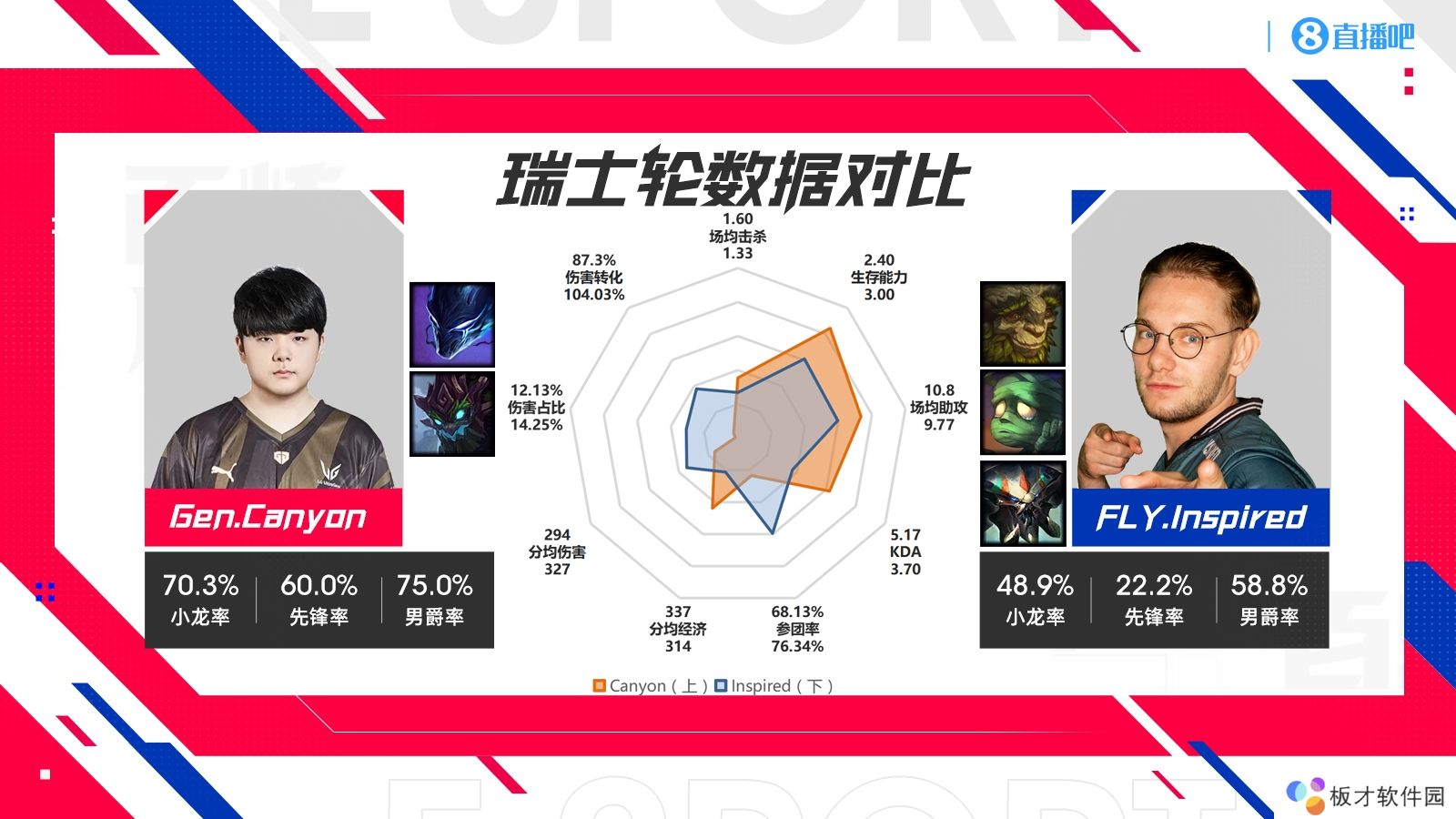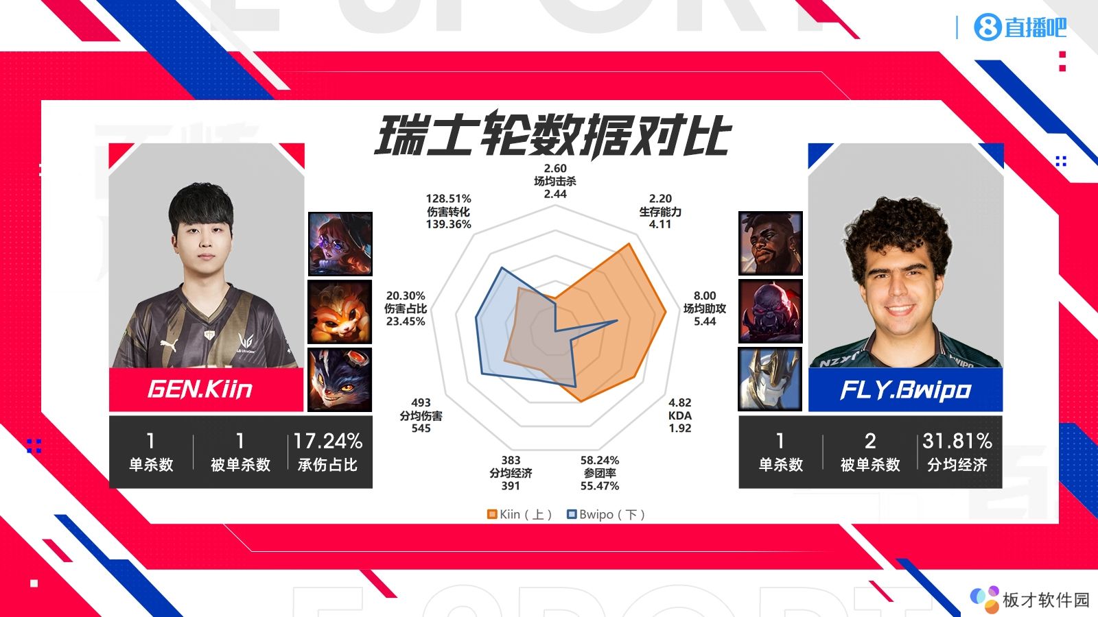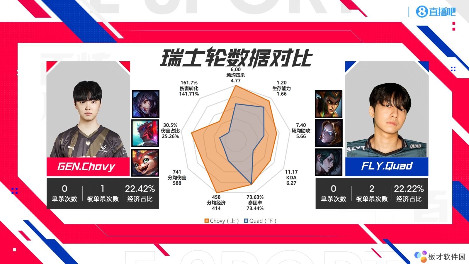 今日小编整理八强淘汰赛各支队伍对阵的瑞士轮数据对比,第四场是LCS独苗FLY对阵LCK二号种子Gen.G!
