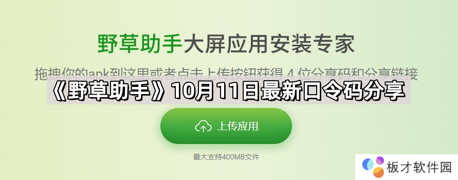 野草助手10.11最新口令是什么?野草助手可以帮助我们免费观看各种热门的电视剧电影,不过要输入口令码才可以免费观看下载,今日的最新口令码已经出来了,那么具体的接下来就跟着小编一起来了解一下《野草助手》10月11日最新口令码分享。