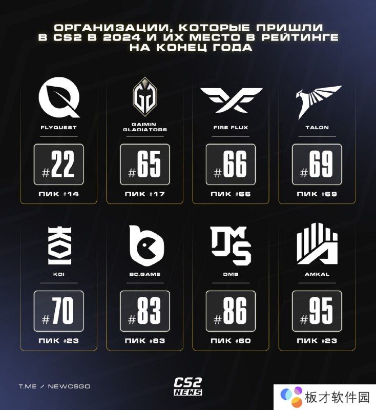 2024年宣布进军CS领域的俱乐部们以及年终排名(由高到低):