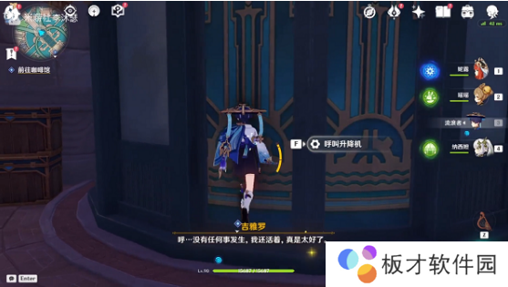 3、看完剧情之后到达一个升降机的门口,需要先完成对话,然后乘坐这个升降机到一层;