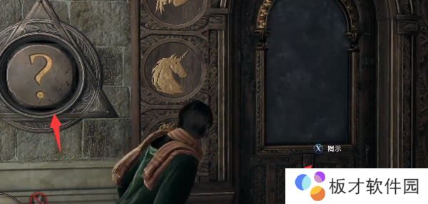 2、在传送点旁边即可看到魔咒学教室的门,交互之后揭示谜面。