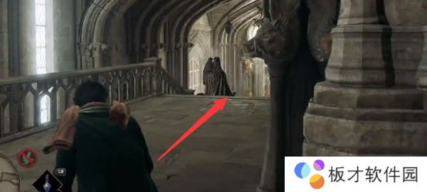 2、首先我们进入礼堂之后向左前方移动,之后拐进去即可看到需要解谜的门。