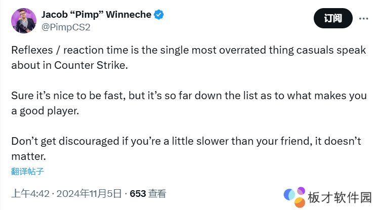 Pimp:“反应/反应时间是普通玩家在CS里谈的最多的话题之一。当然,反应快是好事,但就成为一名优秀选手的标准而言,速度却排在很后面。