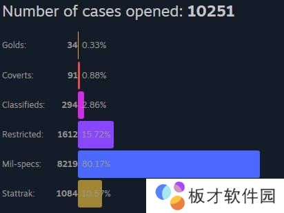Virtus.pro战队步枪手在他的账号上总计开箱10251个,花费2.3万美元,出金34次。出金概率仅有0.33%
