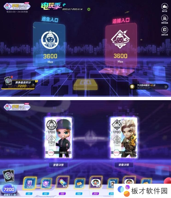双阵营的赛季最高分总和达到对应值时,少年们就能在荣耀之路界面解锁对应奖励啦!