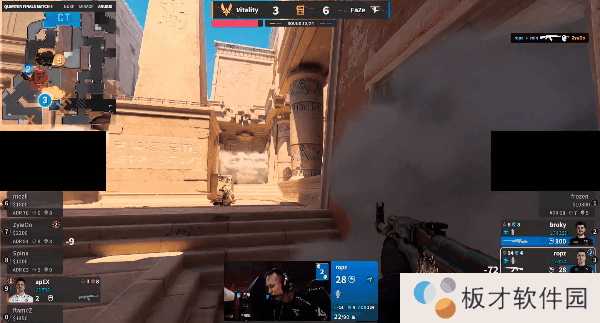来到长枪局Vitality再次爆弹A区,在道具的加持下成功埋下炸弹,但是后续守包面对FaZe的回防被全面瓦解。次回合Vitality再次进攻A区,Spinx与mezii两人完成四杀,Vitality再次轻松拿下胜利。回到长枪局后FaZe拿到胜利,后续顺势追上比分,来到第九回合FaZe开局直接A1双人前顶拿到首杀,随后Vitality控制中路想再次夹击A区,结果又被A1的rain挡住,broky大狙更是轻松收下拱门的土匪,拿到胜利后FaZe在防守方稳住阵脚反超比分。上半场比分来到7-5。