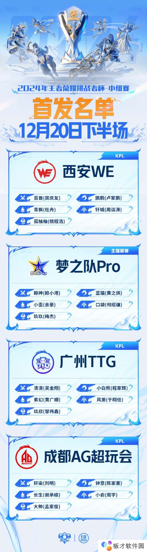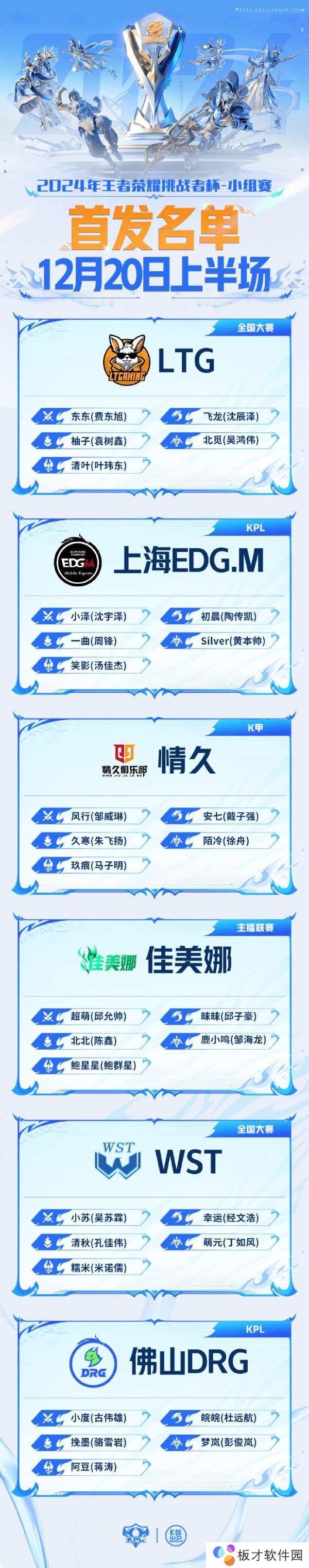 2024年王者荣耀挑战者杯 小组赛W3D2【首发名单】送达 !