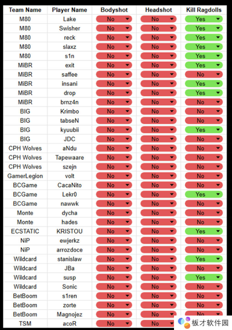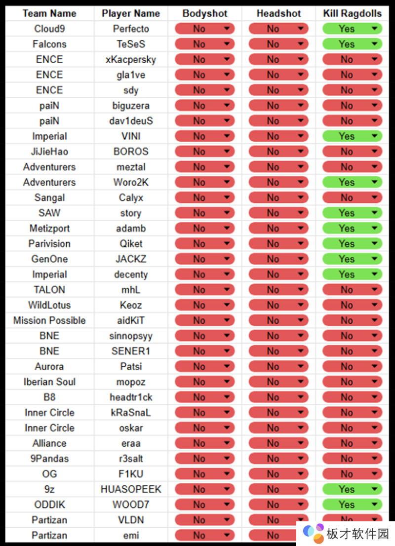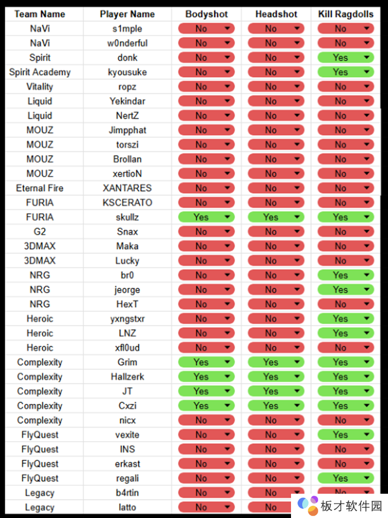 其中大部分职业哥的伤害预测三项功能都是禁用状态,唯一三项都开的只有skullz、Grim、hallzerk、JT、Cxzi五人。剩下的职业哥就算开启,大部分人也只开启最后一项,也就是“预测击杀布娃娃效果。”比如donk、kyousuke等就是其中的代表。