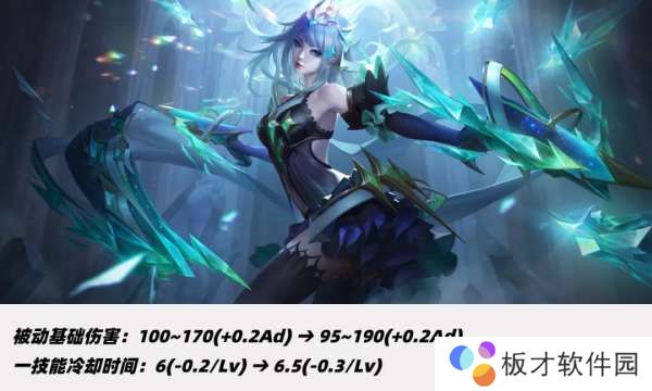 一技能冷却时间从6-5秒调整为6.5-5秒,即一级时增加了0.5秒、满级不变,改动思路就是削弱前期、加强后期。