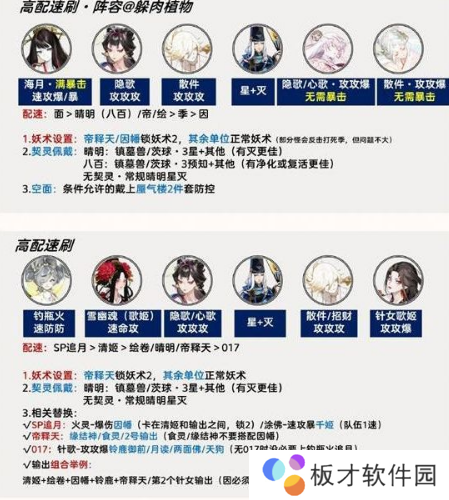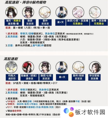 4.阴阳师百鬼逸闻协行阵容具体如下,有中低高配阵容,大家可以参考。
