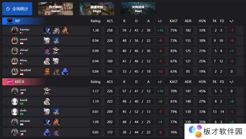 图一隐世修所,XIP 6:13 KRU,图二幽邃地窟,XIP 13:10 KRU,图三深海明珠,XIP 13:9 KRU。来自菲律宾的Kamiyu选手拿到了全场最高的59总击杀,也是XIP逆转取胜的关键。