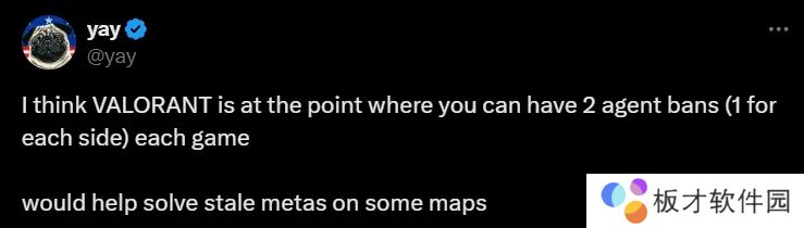 yay选手发文:我认为无畏契约已经到了每局比赛可以禁用两个特工(双方各一个)的地步,这将有助于解决某些地图上的版本陈旧问题(一直使用某套固定阵容)。