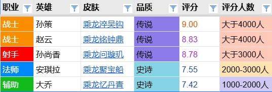 考虑到孙策的传说皮均分很高,在优秀前作对比压力、抽奖获取价格较高的双重不利因素下,时之奇旅仍可迈过七分门槛,应该说本身品质还是过硬的。