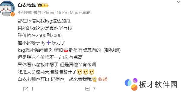 ksg想补强野辅 对胖和????都是有点意向的(都没锁)