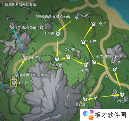 重要提示:黄色路线为高效率刷取路线、推荐去;